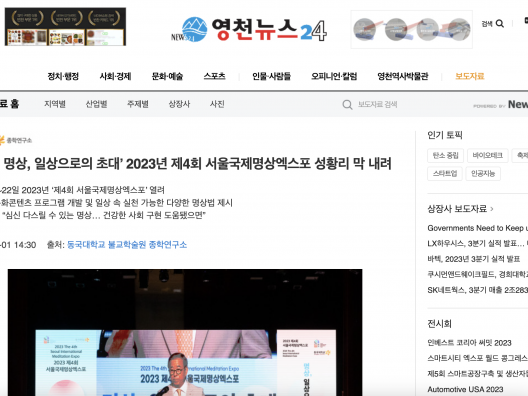 [영천뉴스24] ‘2023 명상, 일상으로의 초대’ 2023년 제4회 서울국제명상엑스포 성황리 막 내려