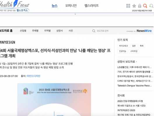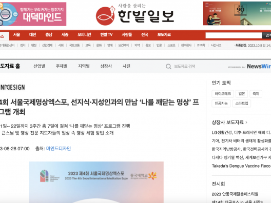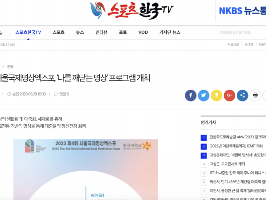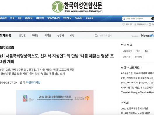 [한밭일보] 제4회 서울국제명상엑스포, 선지식·지성인과의 만남 ‘나를 깨닫는 명상’ 프로그램 개최