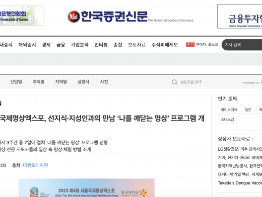 [한국증권신문] 제4회 서울국제명상엑스포, 선지식·지성인과의 만남 ‘나를 깨닫는 명상’ 프로그램 개최