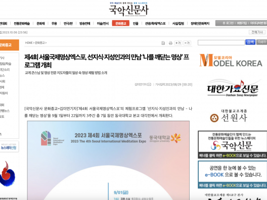 [국악신문사] 제4회 서울국제명상엑스포, 선지식·지성인과의 만남 ‘나를 깨닫는 명상’ 프로그램 개최
