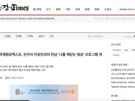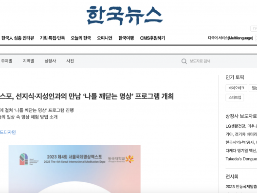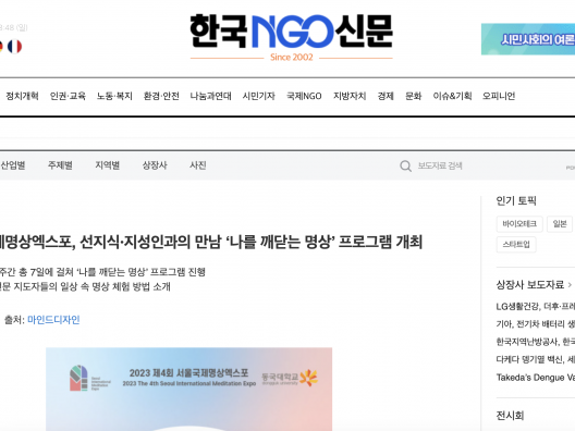 [한국NGO신문] 제4회 서울국제명상엑스포, 선지식·지성인과의 만남 ‘나를 깨닫는 명상’ 프로그램 개최
