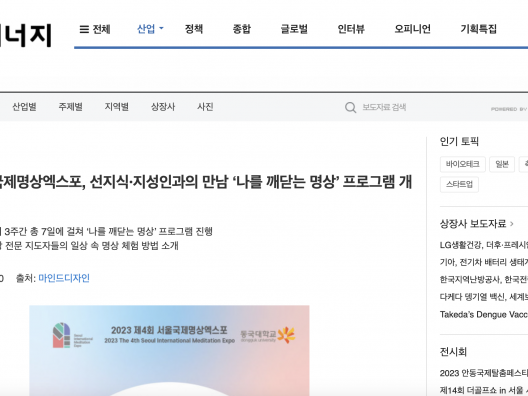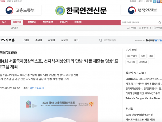 [한국안전신문] 제4회 서울국제명상엑스포, 선지식·지성인과의 만남 ‘나를 깨닫는 명상’ 프로그램 개최