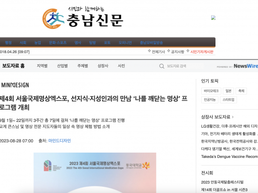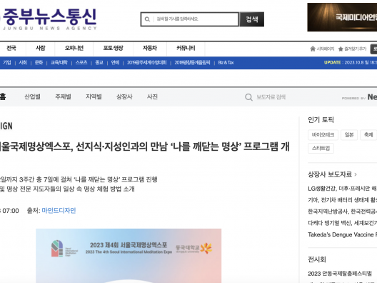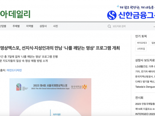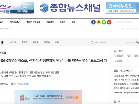 [충남신문] 제4회 서울국제명상엑스포, 선지식·지성인과의 만남 ‘나를 깨닫는 명상’ 프로그램 개최