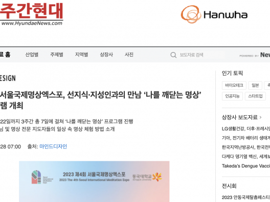 [주간현대] 제4회 서울국제명상엑스포, 선지식·지성인과의 만남 ‘나를 깨닫는 명상’ 프로그램 개최