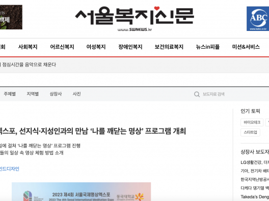 [서울복지신문] 제4회 서울국제명상엑스포, 선지식·지성인과의 만남 ‘나를 깨닫는 명상’ 프로그램 개최