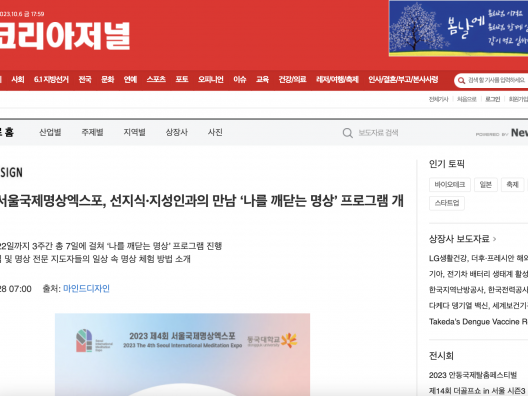 [시사코리아저널] 제4회 서울국제명상엑스포, 선지식·지성인과의 만남 ‘나를 깨닫는 명상’ 프로그램 개최