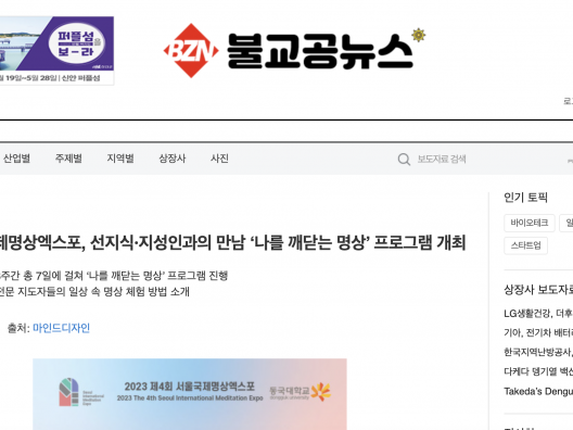 [불교공뉴스] 제4회 서울국제명상엑스포, 선지식·지성인과의 만남 ‘나를 깨닫는 명상’ 프로그램 개최