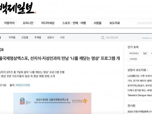 [새백제일보] 제4회 서울국제명상엑스포, 선지식·지성인과의 만남 ‘나를 깨닫는 명상’ 프로그램 개최
