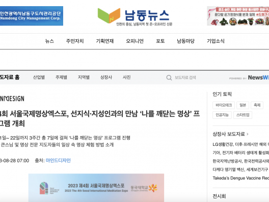 [남동뉴스] 제4회 서울국제명상엑스포, 선지식·지성인과의 만남 ‘나를 깨닫는 명상’ 프로그램 개최