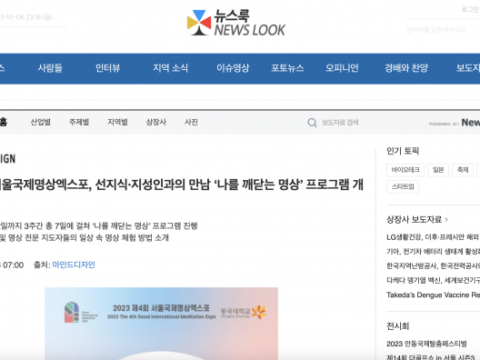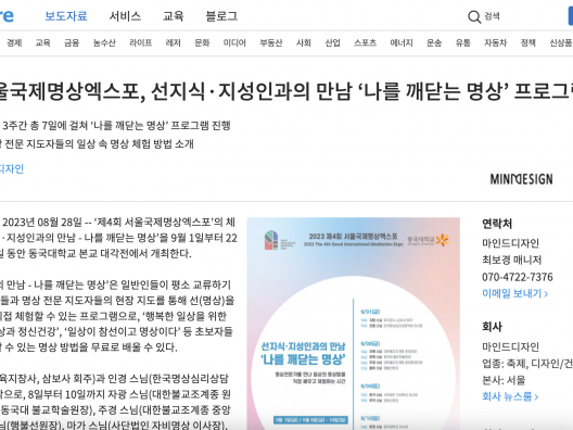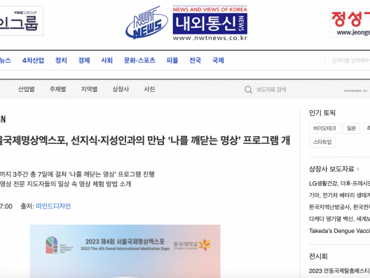 [뉴스와이어] 제4회 서울국제명상엑스포, 선지식·지성인과의 만남 ‘나를 깨닫는 명상’ 프로그램 개최