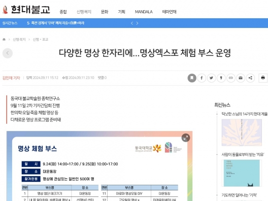 다양한 명상 한자리에...명상엑스포 체험 부스 운영