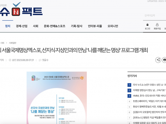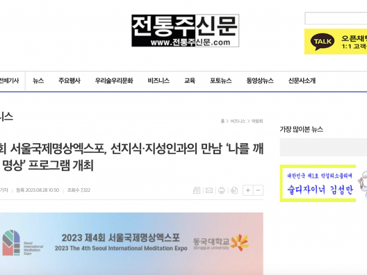 [전통주신문] 제4회 서울국제명상엑스포, 선지식·지성인과의 만남 ‘나를 깨닫는 명상’ 프로그램 개최