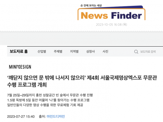[뉴스와이어] ‘깨닫지 않으면 문 밖에 나서지 않으리’ 제4회 서울국제명상엑스포 무문관 수행 프로그램 개최