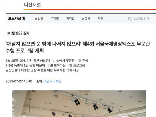 [다산저널] ‘깨닫지 않으면 문 밖에 나서지 않으리’ 제4회 서울국제명상엑스포 무문관 수행 프로그램 개최