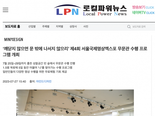 [LPN로컬파워뉴스] ‘깨닫지 않으면 문 밖에 나서지 않으리’ 제4회 서울국제명상엑스포 무문관 수행 프로그램 개최
