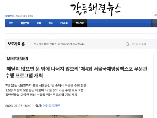 [갈등해결뉴스] ‘깨닫지 않으면 문 밖에 나서지 않으리’ 제4회 서울국제명상엑스포 무문관 수행 프로그램 개최
