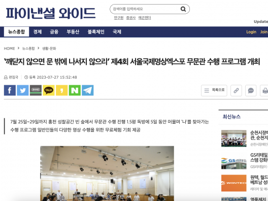 [파이낸셜 와이드] ‘깨닫지 않으면 문 밖에 나서지 않으리’ 제4회 서울국제명상엑스포 무문관 수행 프로그램 개최