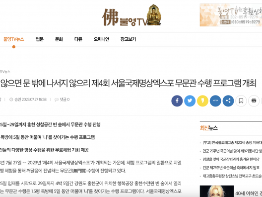 [불영TV] 깨닫지 않으면 문 밖에 나서지 않으리 제4회 서울국제명상엑스포 무문관 수행 프로그램 개최