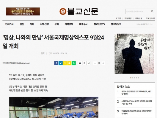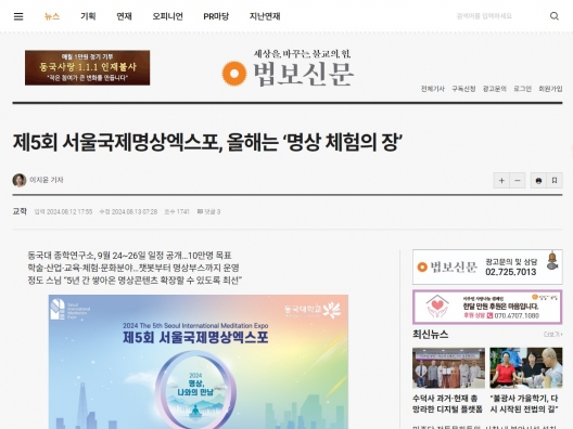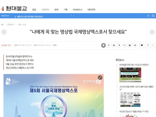 ‘명상, 나와의 만남’ 서울국제명상엑스포 9월24일 개최 - 불교신문